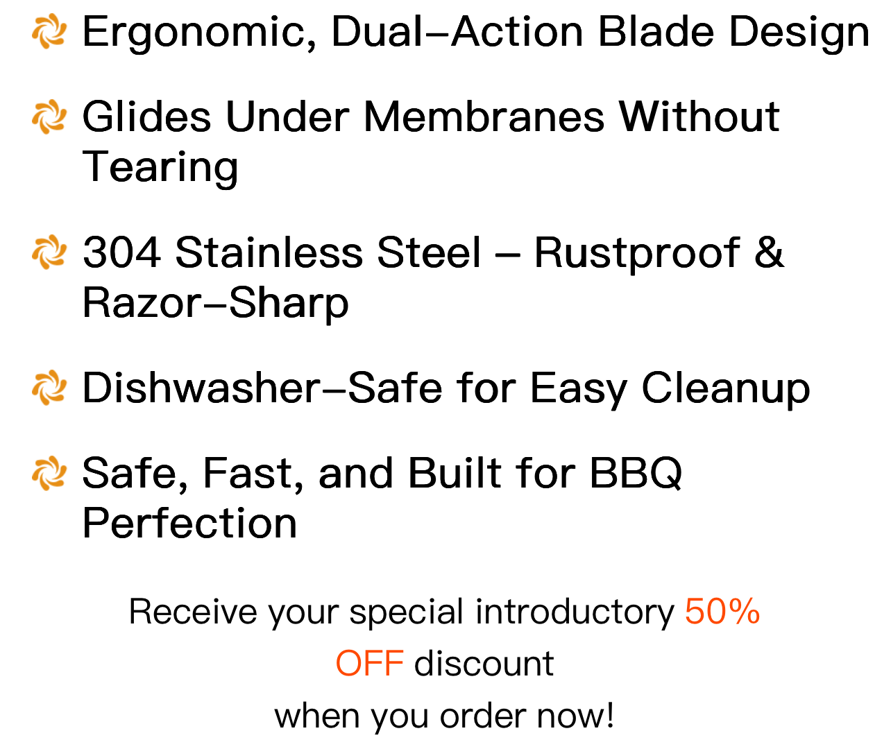 We grill almost every weekend, and this tool saves us so much time. The dual blades lift the membrane cleanly and trim excess fat with ease. It’s sturdy, easy to hold, and makes prep a breeze on all types of ribs!